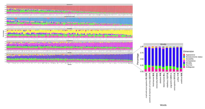 Social evaluation, i.e., people’s views of self, others, and groups, is ubiquitous and embedded in our language. In turn, social evaluative words are used intensively in studies of human social evaluation. However, standardized Chinese word lists for social evaluation are under-developed; the only available word lists are based on the big-two model of social evaluation (i.e., agency and warmth) and cover small numbers of words. To fill the gap, we conducted a survey with a relatively large sample (n = 1270, 50% female) and a large number of words (1908) that might describe extended social evaluative dimensions: appearance, socioeconomic status, sociability, competence, and morality. The participants rated the extent to which each word described a certain social evaluation dimension and how positive/negative each word was. Based on this dataset, we selected words that dominantly describe one of the five above-mentioned dimensions. The final word list has 1040 words, including 245 appearance words (143 positive, 11 neutral, 91 negative), 108 socioeconomic status words (36 positive, 2 neutral, 70 negative), 93 sociability words (53 positive, 5 neutral, 35 negative), 261 competence words (185 positive, 4 neutral, 72 negative), and 333 morality words (149 positive, 1 neutral, 183 negative). This word list provides an extended Chinese social evaluative word list and will serve as a useful resource for researchers in social psychology, linguistics, sociology, and computational social science.
